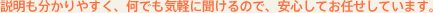 また説明も分かりやすく、何でも気軽に聞けるので、安心してお任せすることが出来ます。